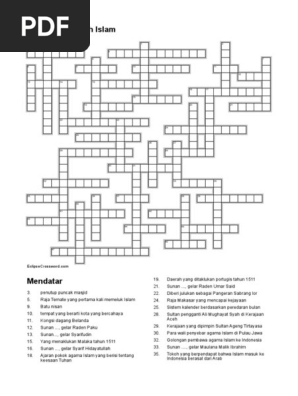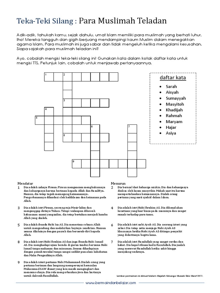 Masukkan juga jumlah kata dan atau huruf yang sudah diketahui untuk mendapatkan hasil yang lebih akurat. Many benefits gained from playing crossword puzzle (tts) not only fill in spare time, playing crossword puzzle can also sharpen our memories or prevent our senility. Tts islami merupakan game teka teki silang yang khusus untuk mengasah otak tentang keislaman. Sistem kami menemukan 25 jawaban utk pertanyaan tts kerajaan islam. With the ambition to enhance and deepen the understanding of islam and strengthen the relationship with allah ta'ala.